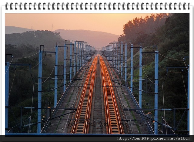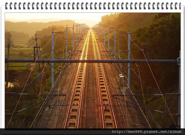 今天太陽紅咚咚讓鐵道染上金黃色