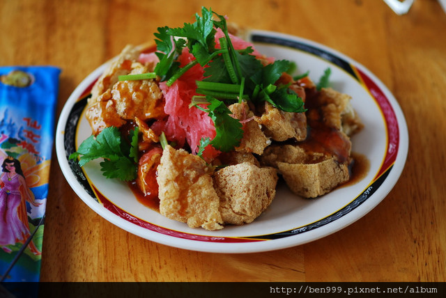 臭豆腐和肉圓在天后宮 旁傳統市場的二側